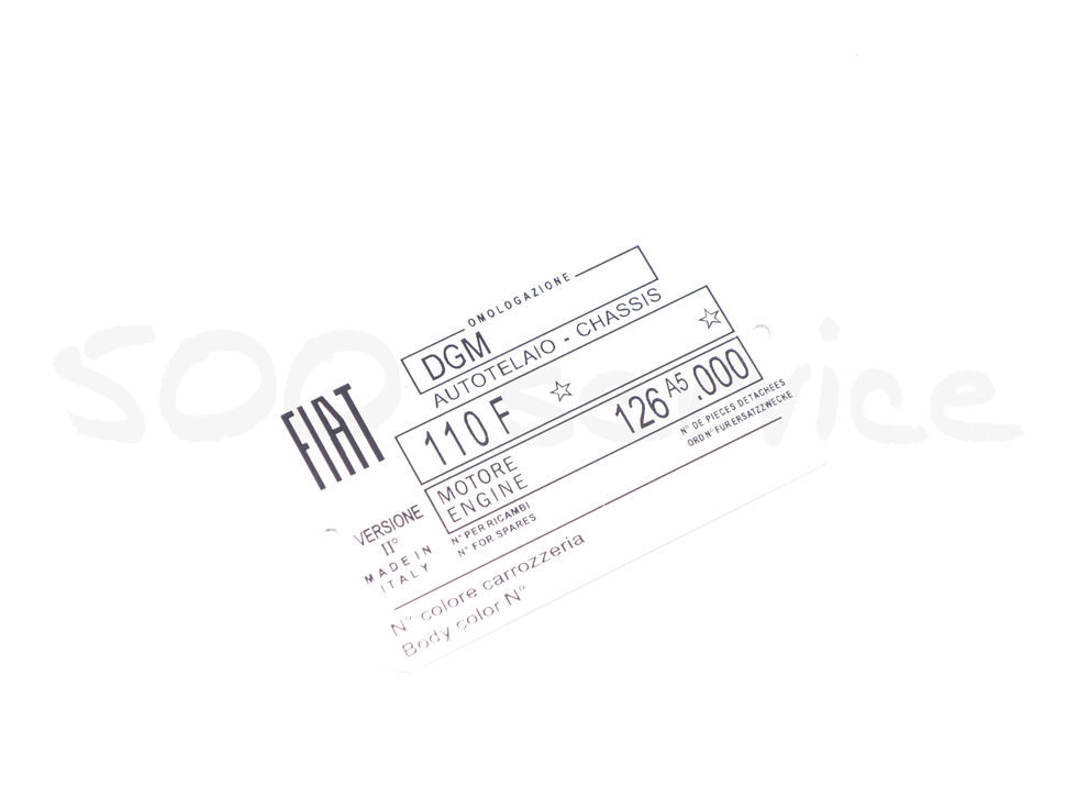 Targhetta identificativa in alluminio | Fiat 500 R |